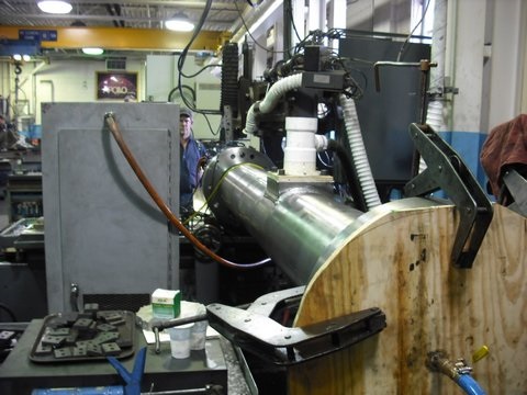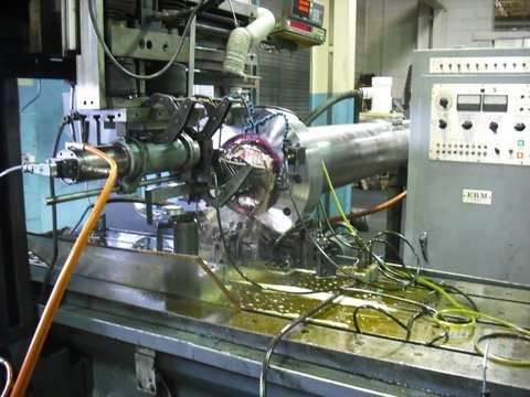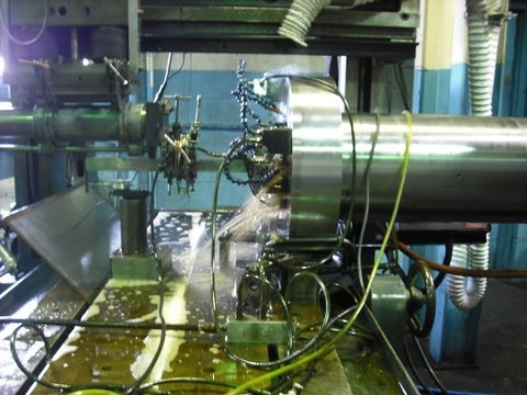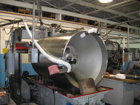 Conventional burn of a slot through the length of a steel generator for energy industry.